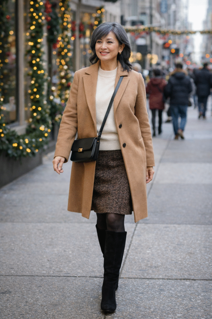 Style tip: Camel or gray coats instantly elevate any outfit.